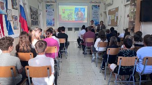 Сегодня, 3 сентября, в общеобразовательной школе при Посольстве России на Кипре состоялся общешкольный классный час, посвящённый 80-летию окончания Второй мировой войны. Интересные, познавательные материалы для классного часа были подготовлены учителем истории Фединой Л.В. при участии учеников 7 класса. Учащиеся 5-11 классов получили важную информацию об этом важнейшем мировом событии.