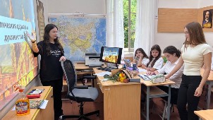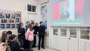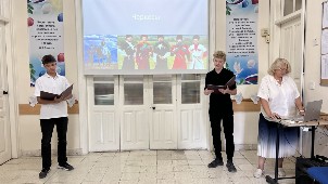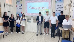 А 10-й класс порадовал нас устным журналом с презентацией и видеорядом об удмуртах, удивительно музыкальном народе. Слушателей поразило обилие знаменитых личностей, имеющих отношение к Удмуртии, называемой «краем родников». Великий композитор П.А. Чайковский, знаменитый конструктор-оружейник М.Т. Калашников, 4-кратная олимпийская чемпионка лыжница Галина Кулакова, талантливая фигуристка, собравшая всё золото мира Алина Загитова… И конечно же, «Бурановские бабушки», под чью зажигательную песню, с которой они на Евровидении заняли 2 место, мы потанцевали.