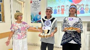 Ребята так артистично, используя жанр интервью, рассказали об этом празднике, о традициях, о пищевых пристрастиях этих знаменитых охотников, рыболовов и ремесленников, об их повседневной и праздничной одежде, что каждый из присутствующих ощутил себя если не якутом, то по меньшей мере глубоко проникся национальной культурой этого северного народа. Всем собравшимся было обещано угощение. Будем ждать салат «Индигирка», хаанкерчэг, саламат и другие вкусности.