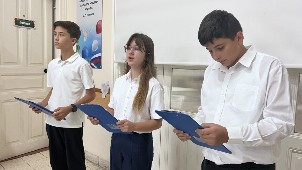 Учащиеся начальной школы – третьеклассники - также сегодня порадовали нас своим занимательным рассказом об удивительной Республике Дагестан, входящей в Российскую державу. Все присутствующие отметили особое чувство, с которым дети, сообщали о самом южном регионе России и крупнейшем среди семи субъектов Северо-Кавказского федерального округа.