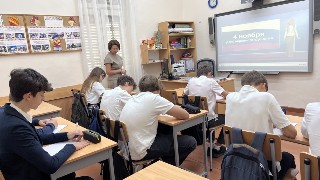 1 ноября состоялся единый классный час в рамках цикла бесед «Военная слава России: имена на века». Он был посвящен празднику День народного единства, который ежегодно отмечается в России 4 ноября. Его учредили в 2004 году, а впервые отпраздновали ровно 20 лет назад, в 2005-м. Этот день связан с историческим событием — освобождением Москвы от польских интервентов в 1612 году. Тогда простые горожане, не дожидаясь помощи от власти, собрали ополчение и выгнали захватчиков из столицы, что стало символом сплоченности народа в трудное время. В этом году основной темой был подвиг Ивана Сусанина и людям, которые его повторили на протяжении четырех веков нашей истории.